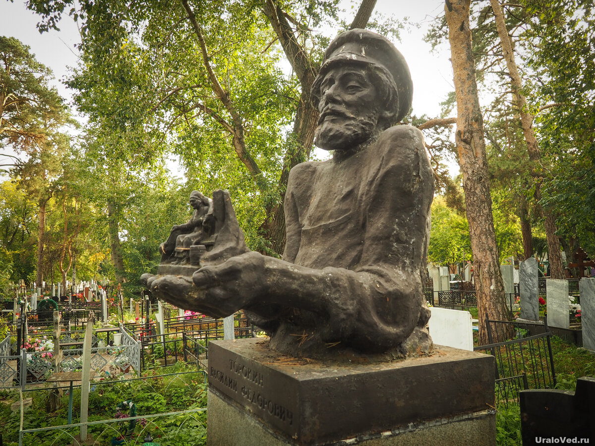 На его территории множество чугунных памятников местной заводской работы. К числу выдающихся по своей оригинальности относятся памятники Н.Р. Баху, В.Ф. Торокину, А.С. Гилеву, П.С. Аникину, Г.Я Дунаеву и др.